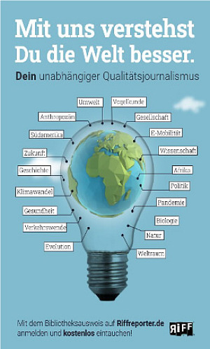 Jetzt auch bei uns in der Gemeindebücherei Schönkirchen RiffReporter - die Plattform für Qualitätsjournalismus Riffreporter bietet fundierten Journalismus zu Themen aus Umwelt, Wissenschaft, Technologie, Gesellschaft und Weltgeschehen, die im schnellen Nachrichtengeschäft meist zu kurz kommen.Die tiefgängig und verlässlich recherchierten Artikel unterstützen Lesende, sich ein eigenes Bild von aktuellen und wichtigen Geschehnissen und Entwicklungen zu machen.RiffReporter ist als Genossenschaft…
